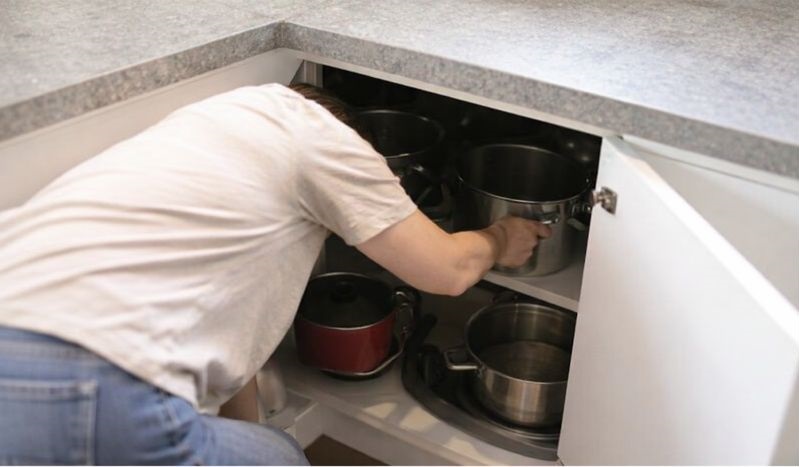 4. Những vấn đề thường gặp khi chọn sai phụ kiện tủ góc- Phải cúi sâu và với tay xa mỗi lần lấy đồ ở khu vực góc trong cùng.