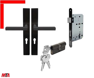 Khóa tay gạt cửa chính- Gồm 1 cặp tay đế dài + thân khóa + ruột khóa 2 đầu chìa.