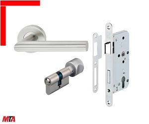 - Cặp tay đế dài hoặc phân thể + thân khóa + ruột không chìa ( 1 đầu vặn + 1 đầu khe rãnh khẩn cấp ).